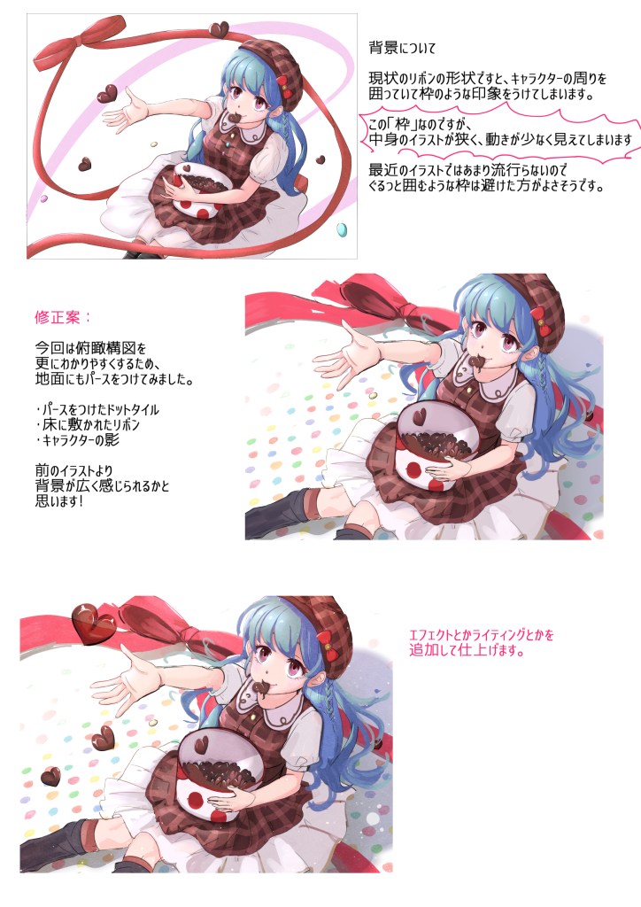 ・今回の絵に取り入れた方がいい事があれば教えて欲しい
